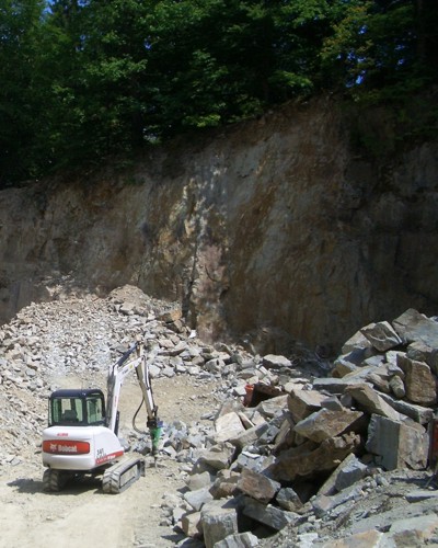 Der Fischbacher Steinbruch ist eine der wenigen Gesteinsaufschlüsse Deutschlands, in denen noch heute dunkelgrüner Serizit-Gneis abgebaut wird (ähnliche Vorkommen findet man nur noch in der italienischen Schweiz und auf Elba). Es handelt sich hier um einen graugrünen, häufig rostbraun gefleckten und stark verfalteten Gesteinstyp, bei dessen Abbau mehrere Varietäten unterschieden werden. Der derzeitige Aufschluß ist bei einer Abbautiefe von ca. 20 Metern ca. 1,0 ha groß. In den letzten Jahren wurde hier in mühsamer Handarbeit wenig gefördert. Mit Übernahme des Steinbruchs durch einen neuen Unternehmer aber beginnt ein modernes Kapitel: erklärtes Ziel ist es, die Reize dieses Natursteins wieder in größerem Umfang zu nutzen. Mit dem Einsatz moderner Gewinnungs- und Verarbeitungstechnologie hat auch für das Urgestein Serizid-Gneis ein neues Zeitalter begonnen. Neue Konzepte und neue Ideen sind inzwischen herangereift, um diesem interessanten Urgestein völlig neue Funktionen und Gestaltungsmöglichkeiten zu geben. Serizit-Gneis wird so nicht nur wieder seinen außergewöhnlichen Stellenwert als natürlicher Baustoff zurückgewinnen, er wird auch neue Akzente setzen - und das nicht nur als Zierde, sondern auch als Kunst.